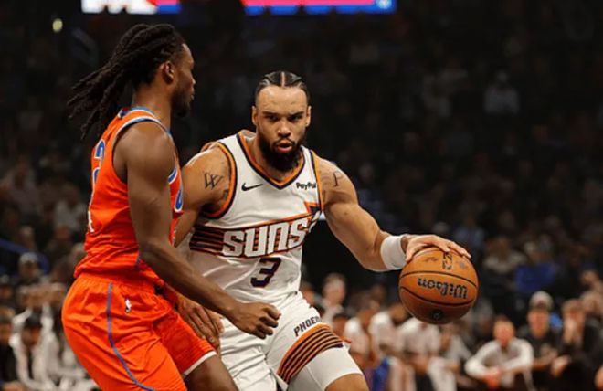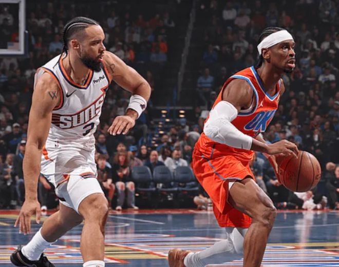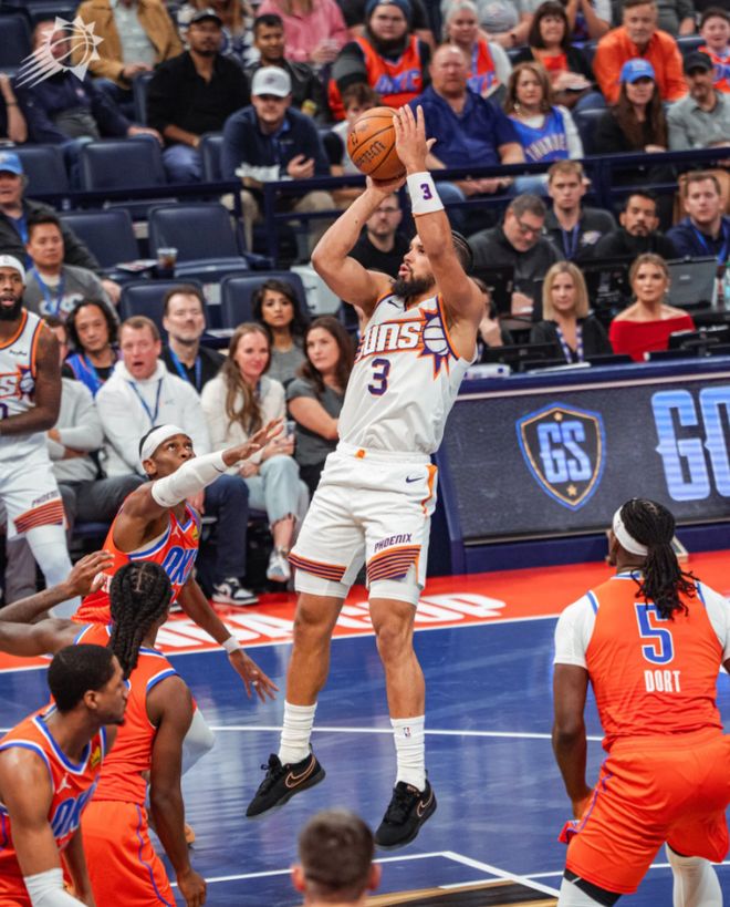 首发阵容方面,雷霆队这边,教练排出的首发五人组为:谢伊-吉尔杰斯-亚历山大、卡森-华莱士、吕冈茨-多尔特、杰伦-威廉姆斯和切特-霍姆格伦;太阳队这边,两大核心布克(右侧腹股沟拉伤)和杰伦-格林(右腿脚拉伤)缺战,首发阵容则为:阿伦、吉莱斯皮、狄龙-布鲁克斯、罗伊斯-奥尼尔、马克-威廉姆斯。