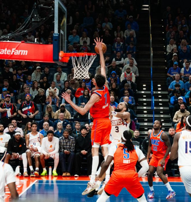 次节回来,切特接球三分再中,目前三分3中3已经砍下11分。布耶三分强投立马回应,切特篮下被切球抢断,古德温反击打进追至13分打停雷霆。切特先是单防钉板大帽狄龙,随后又补防送上排球大帽,把狄龙盖傻了,目前6投仅仅1中。亚历山大重新登场后轻松连拿8分,多尔特连中三记三分、杰威压哨超远三分再中,半场战罢,雷霆74-48领先太阳26分。