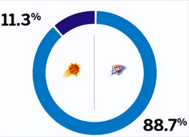 赛前,美媒ESPN对本场比赛进行了胜率预测,雷霆队胜率高达88.7%,太阳队胜率则仅有11.3%,差距依旧非常大。
