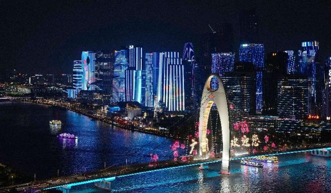 上广州塔,俯瞰珠江如练、城市璀璨。