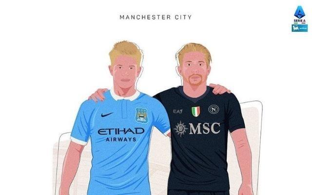 意甲官推晒海报预热那不勒斯vs曼城:过去和现在的德布劳内