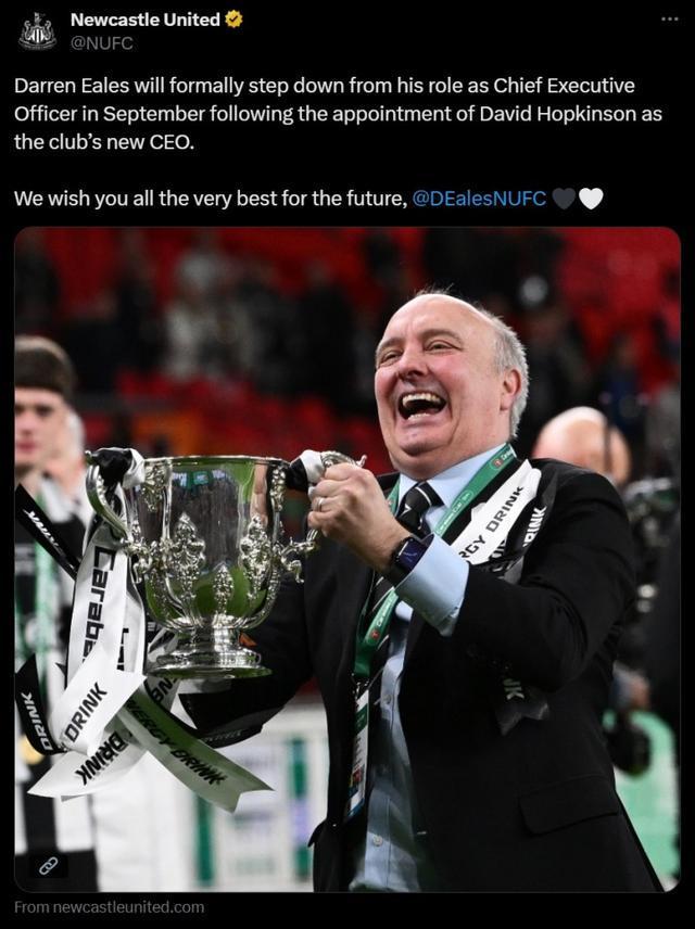 9月4日讯 纽卡官方确认,达伦-伊尔斯正式卸任俱乐部CEO一职。