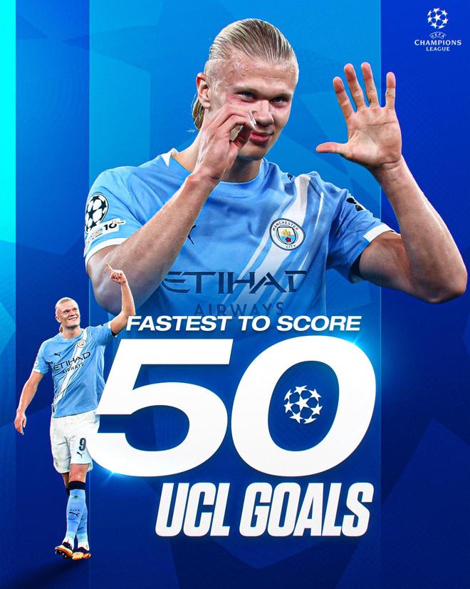 赛后在社交媒体上,哈兰德发布了一张特制的海报,以此庆祝自己在欧冠创造了这项重要的纪录。