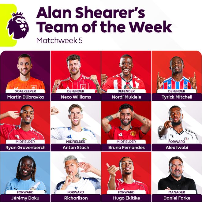 阿兰·希勒英超第5轮最佳阵: